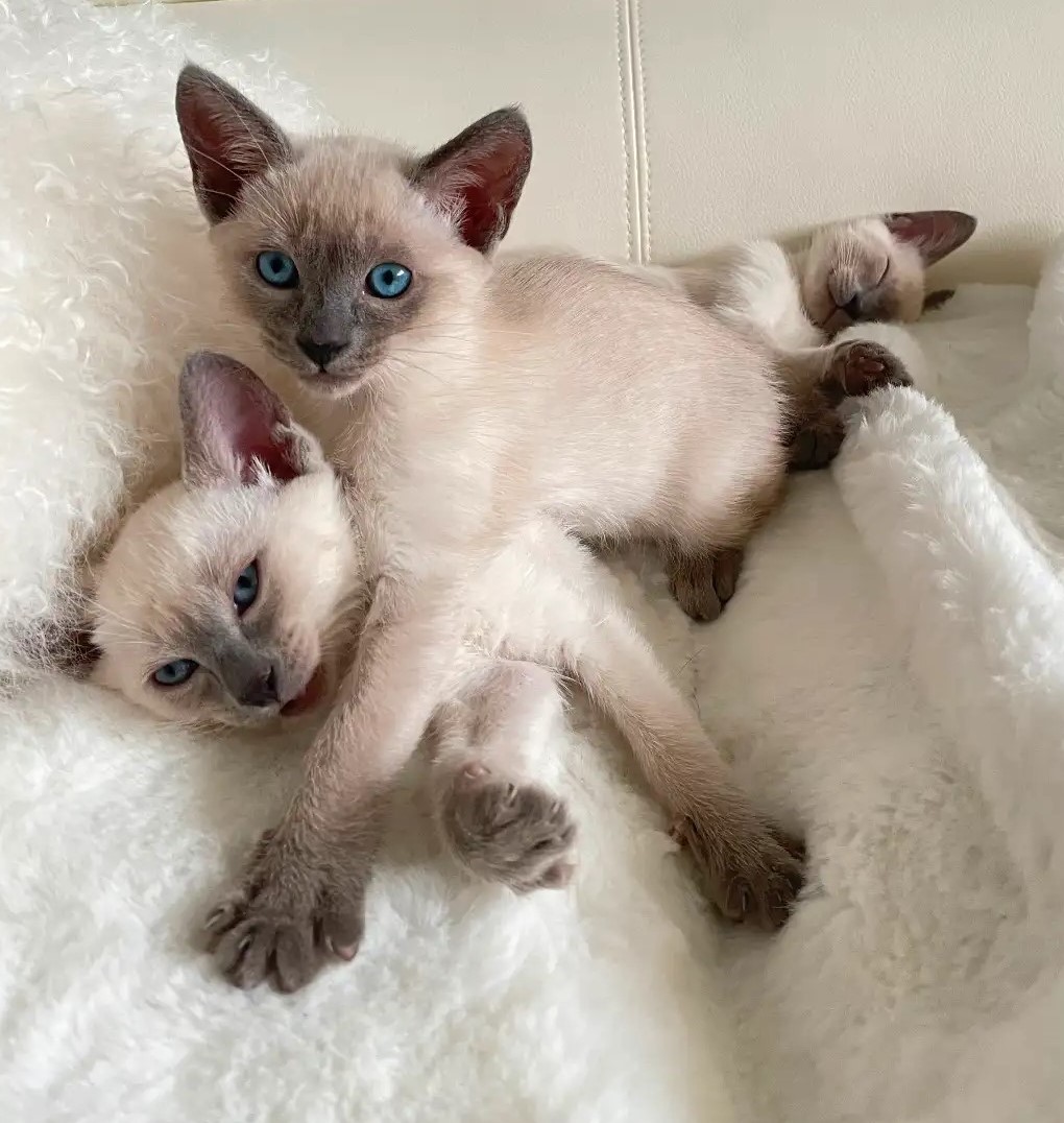 We currently have two adorable blue point female kittens available from our second litter, born on April 1st, from our cherished queen, Miss Kittense.